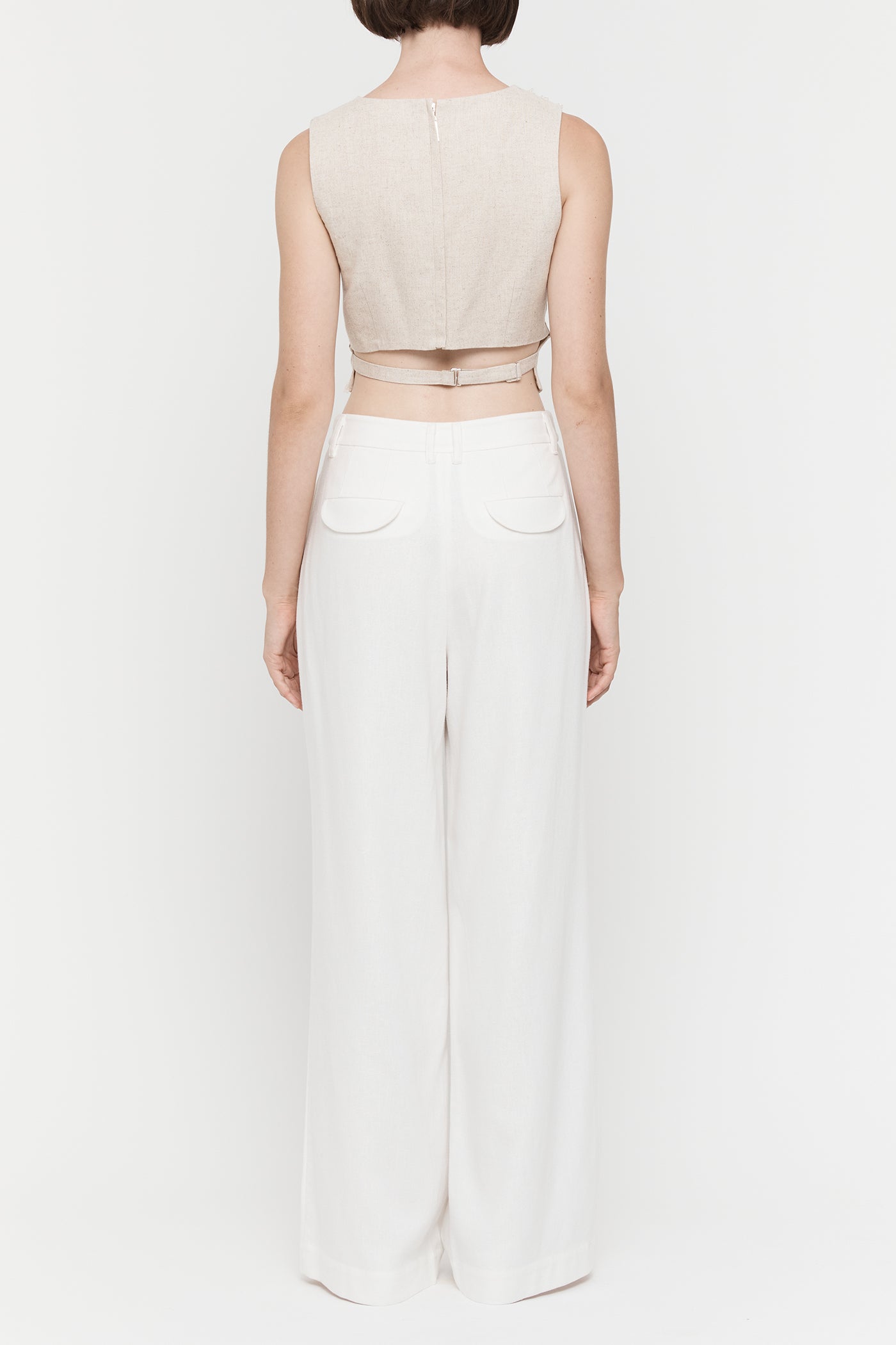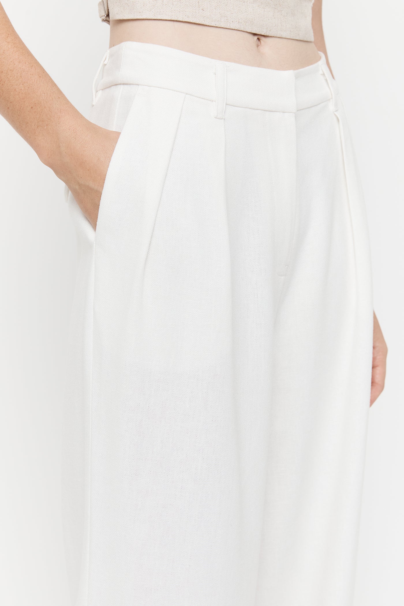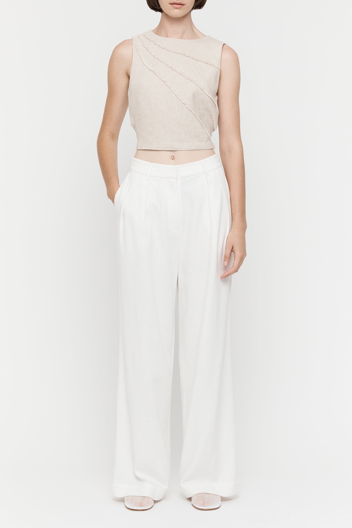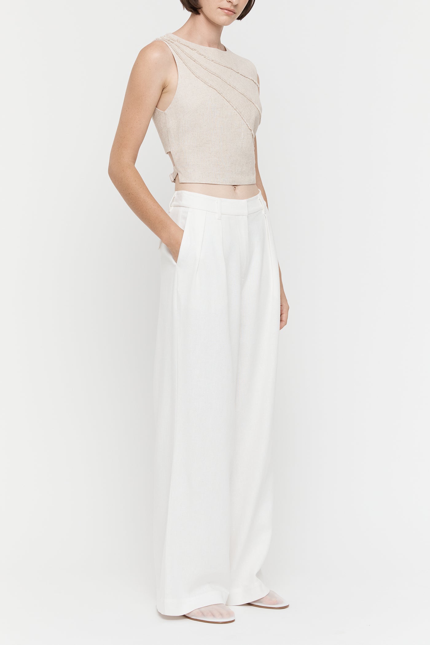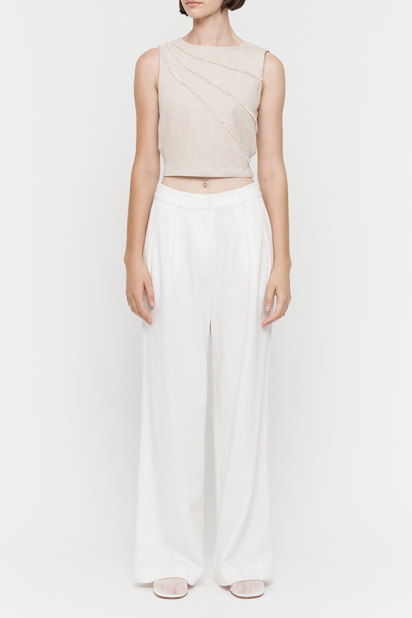 A classic straight leg trouser, crafted in a luxe mid weight linen blend fabrication. Finished with side pockets, belt loops and front pleats for a tailored approach to the summertime classic linen pant.