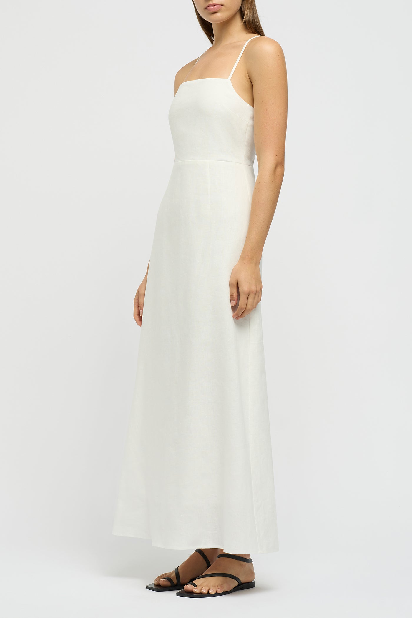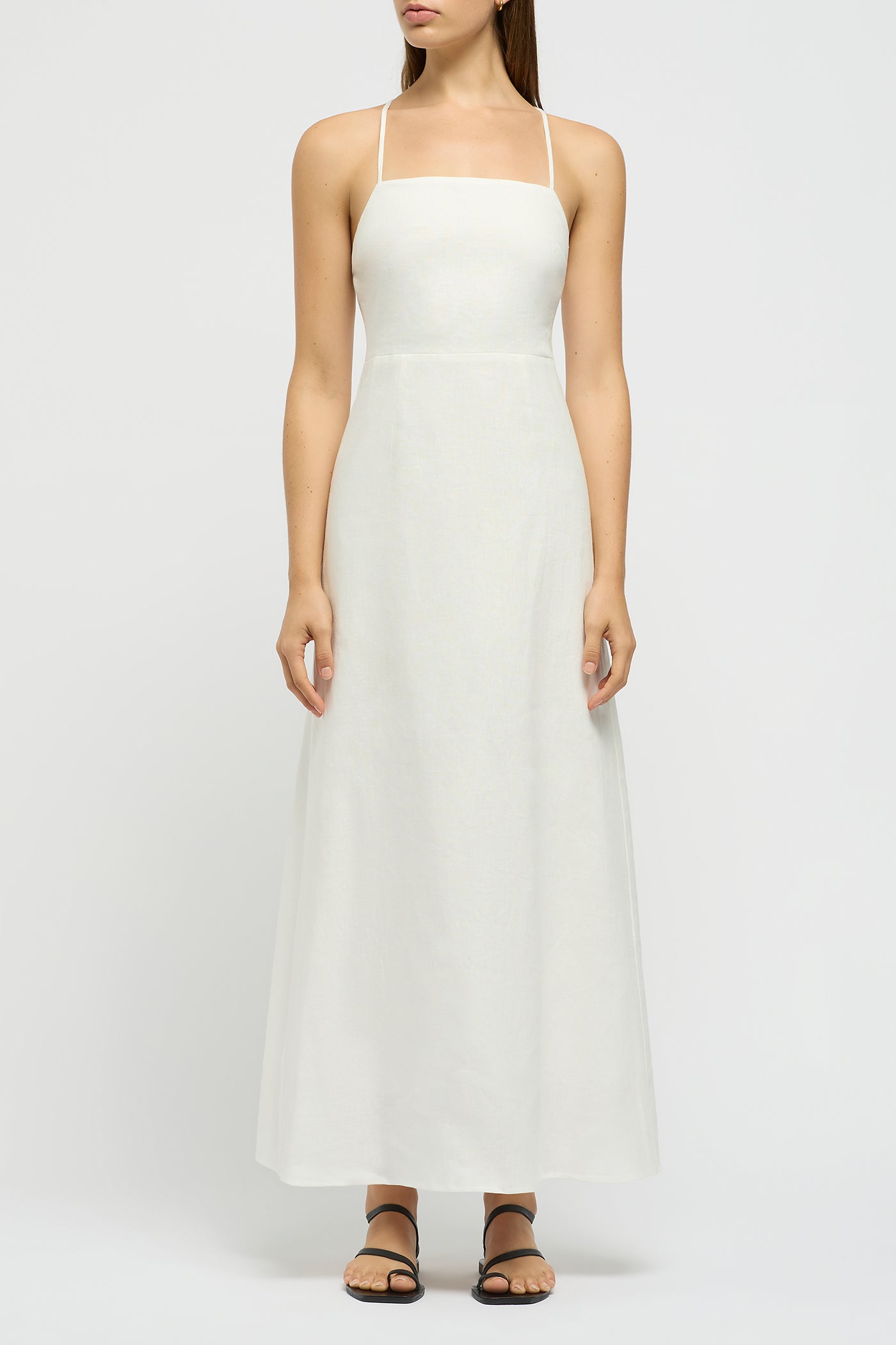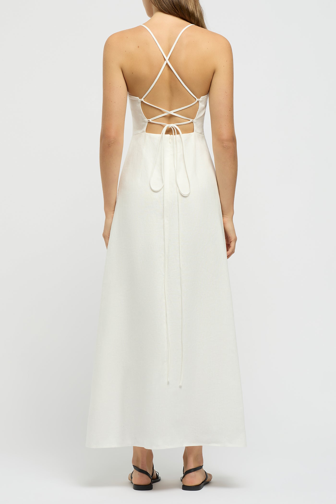 A classic summer midi dress, crafted in a luxe 100% linen fabrication. An easy-to-wear wardrobe staple, designed with a fitted bodice and straight, lightly draped skirt. Finished with a cross-back tie detail. You may also like Black.