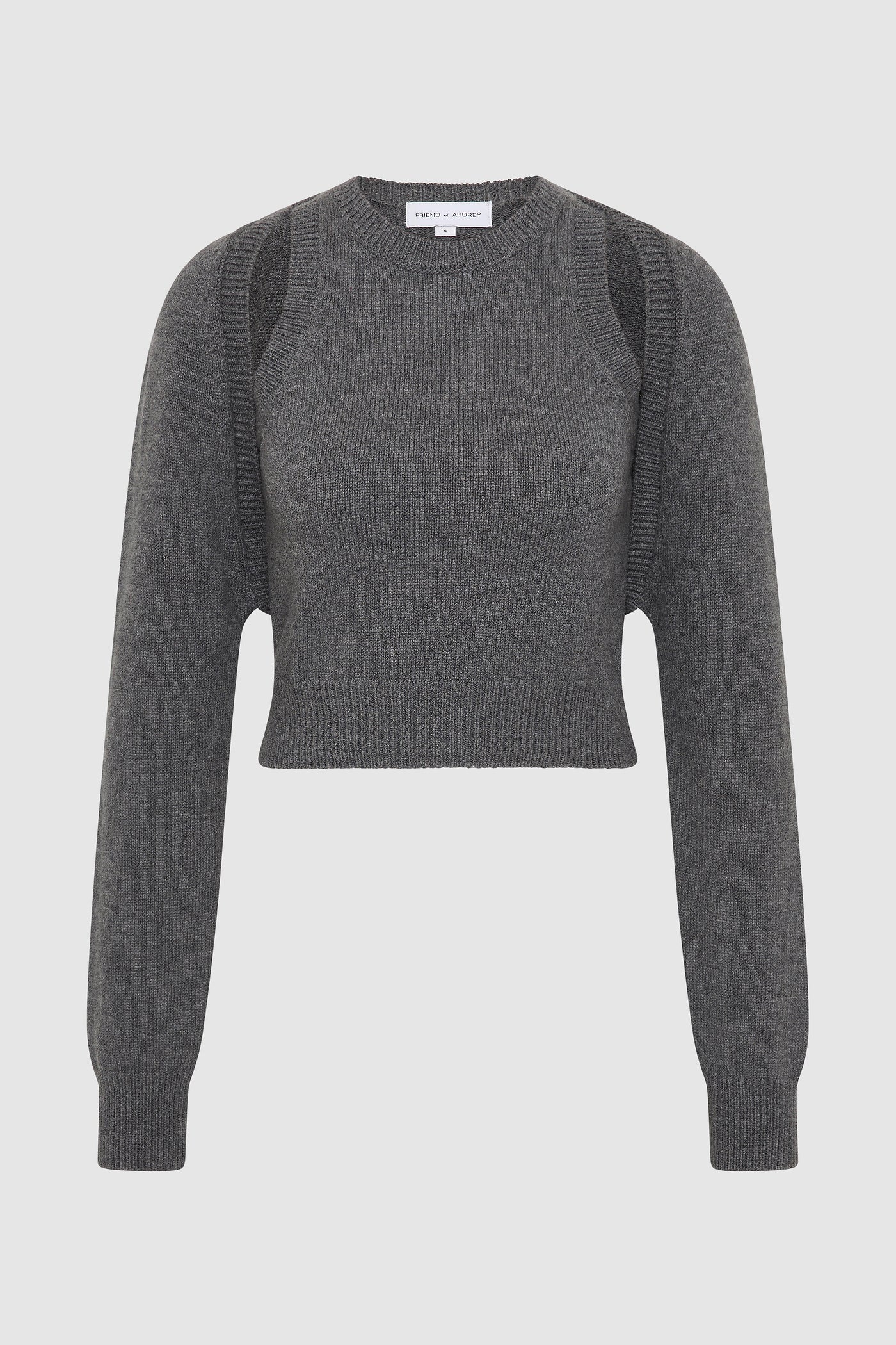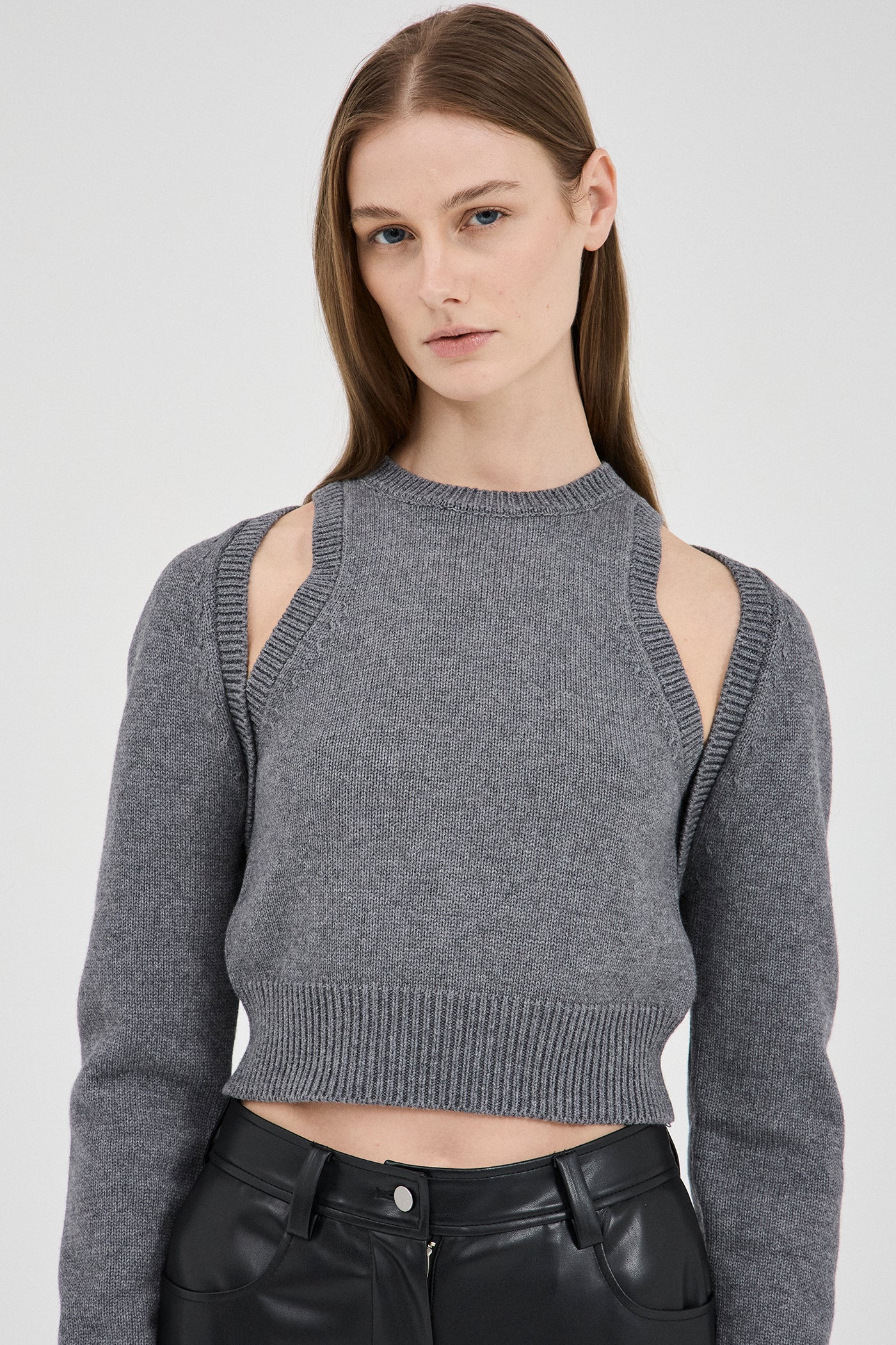 An elevated approach to transeasonal knitwear. A two-piece top crafted in a premium cotton-wool blend knit. Featuring a detachable tank top and bolero piece, designed for multiple styling possibilities.