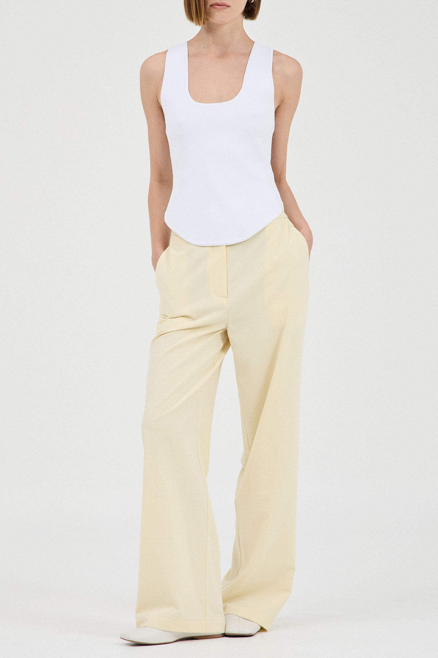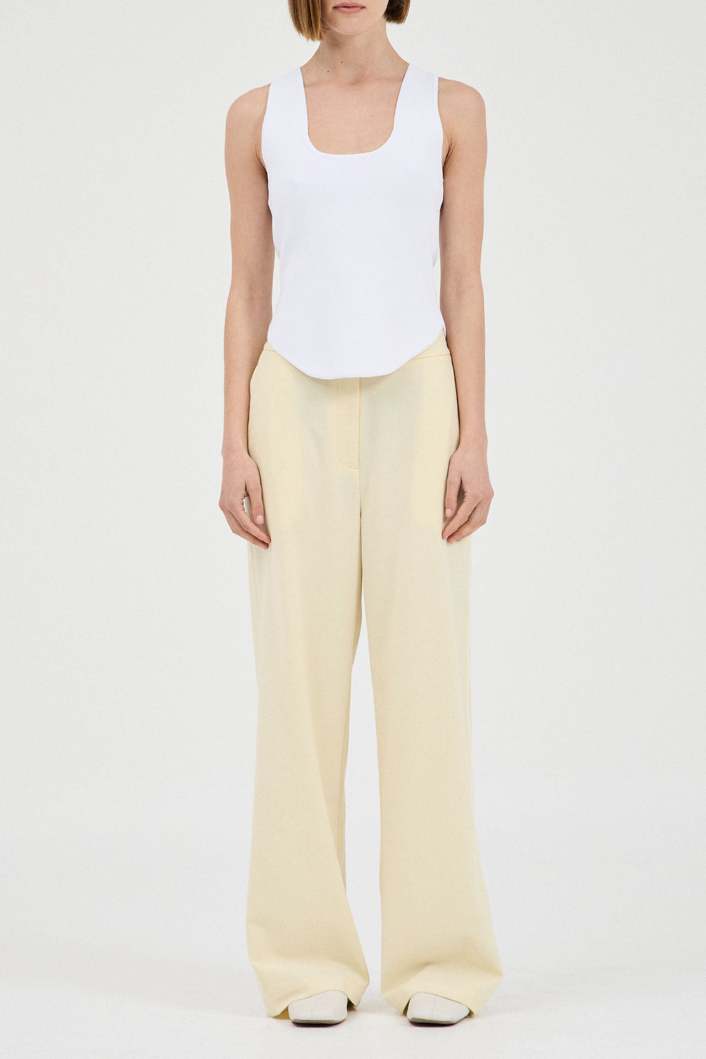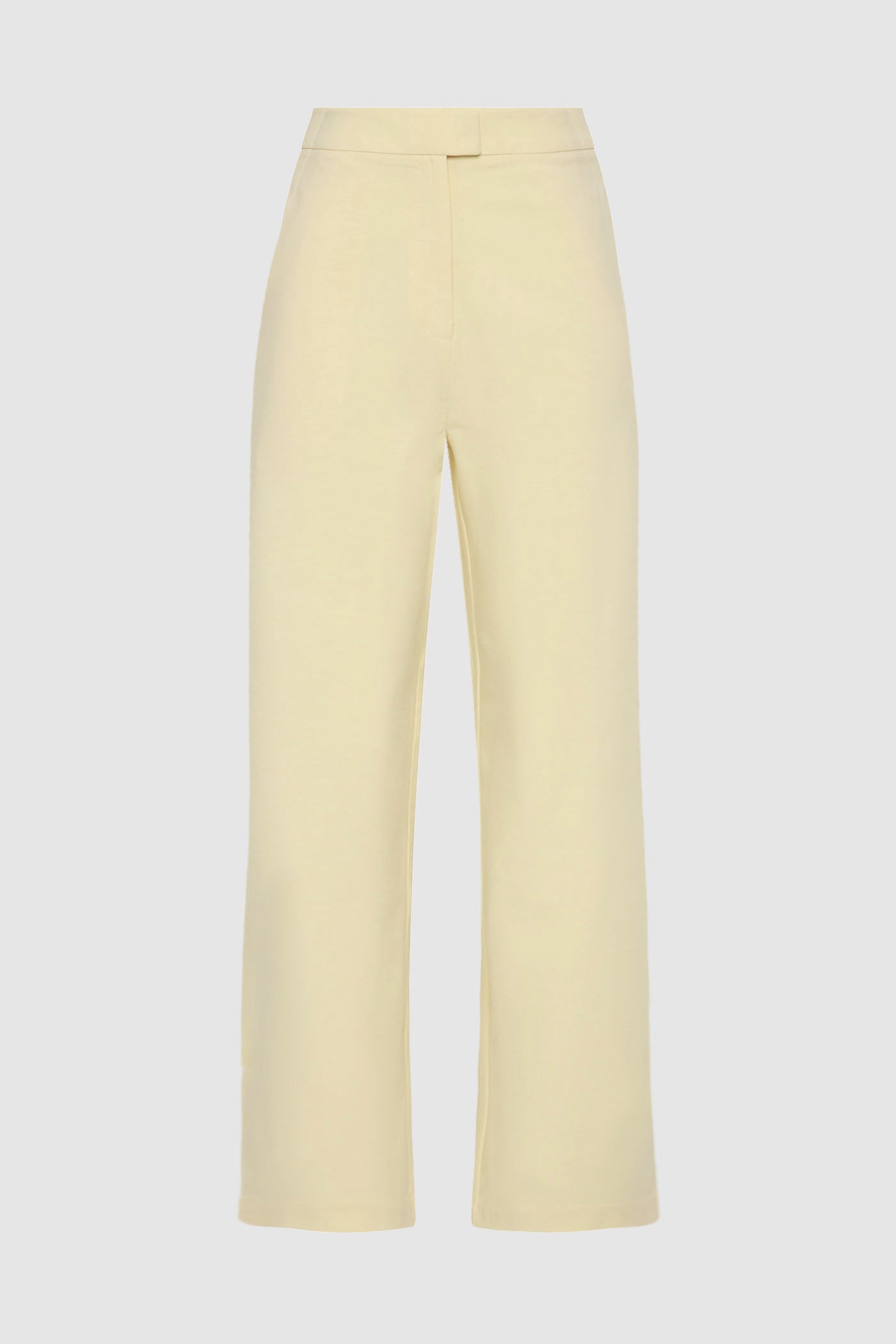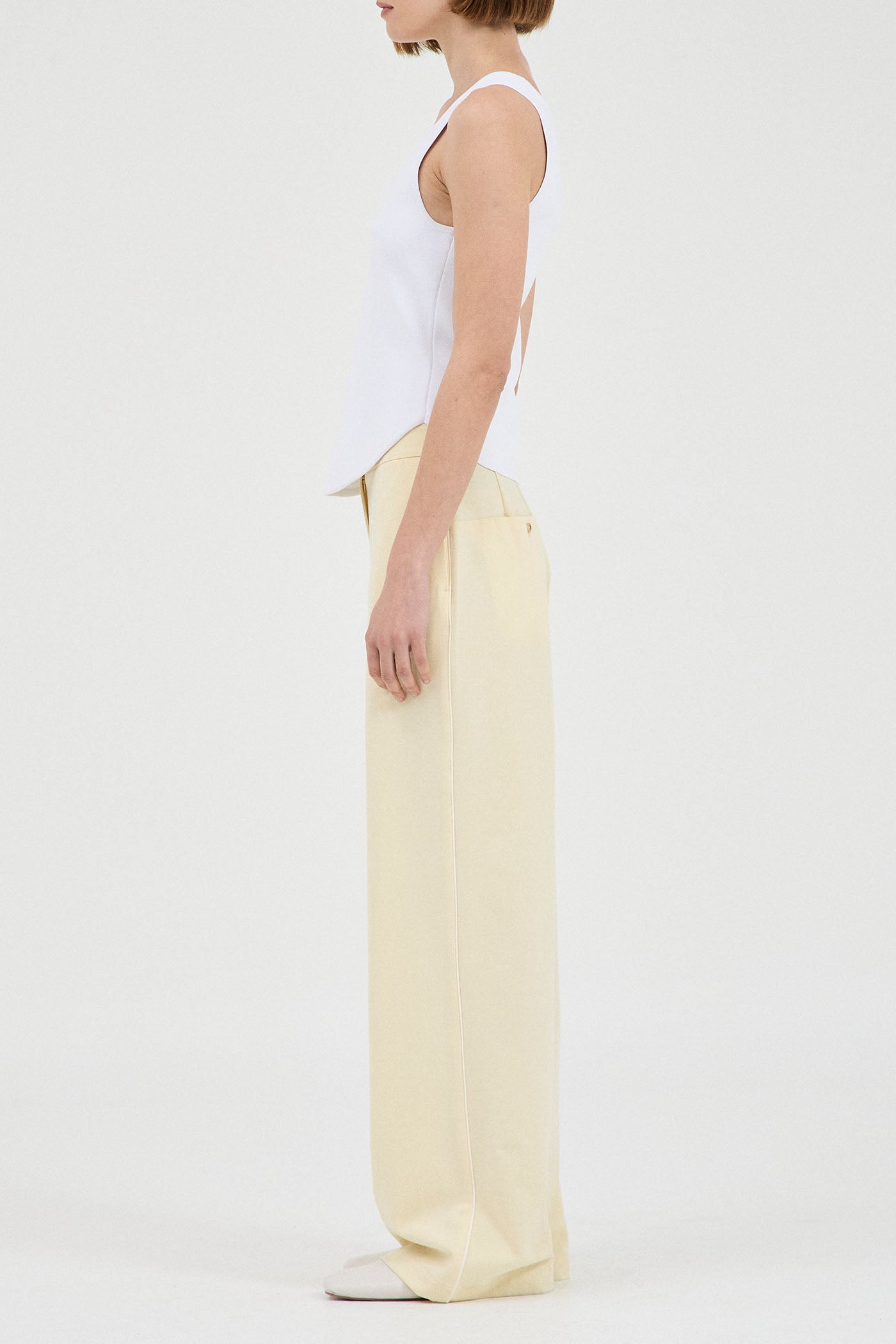 A classic cut tailored trouser, crafted from a premium wool-blend suiting fabrication. Designed in a muted shade of butter for an updated yet timeless addition to the capsule wardrobe. Featuring a contrast piping detail along the side seam for a relaxed, everyday approach.