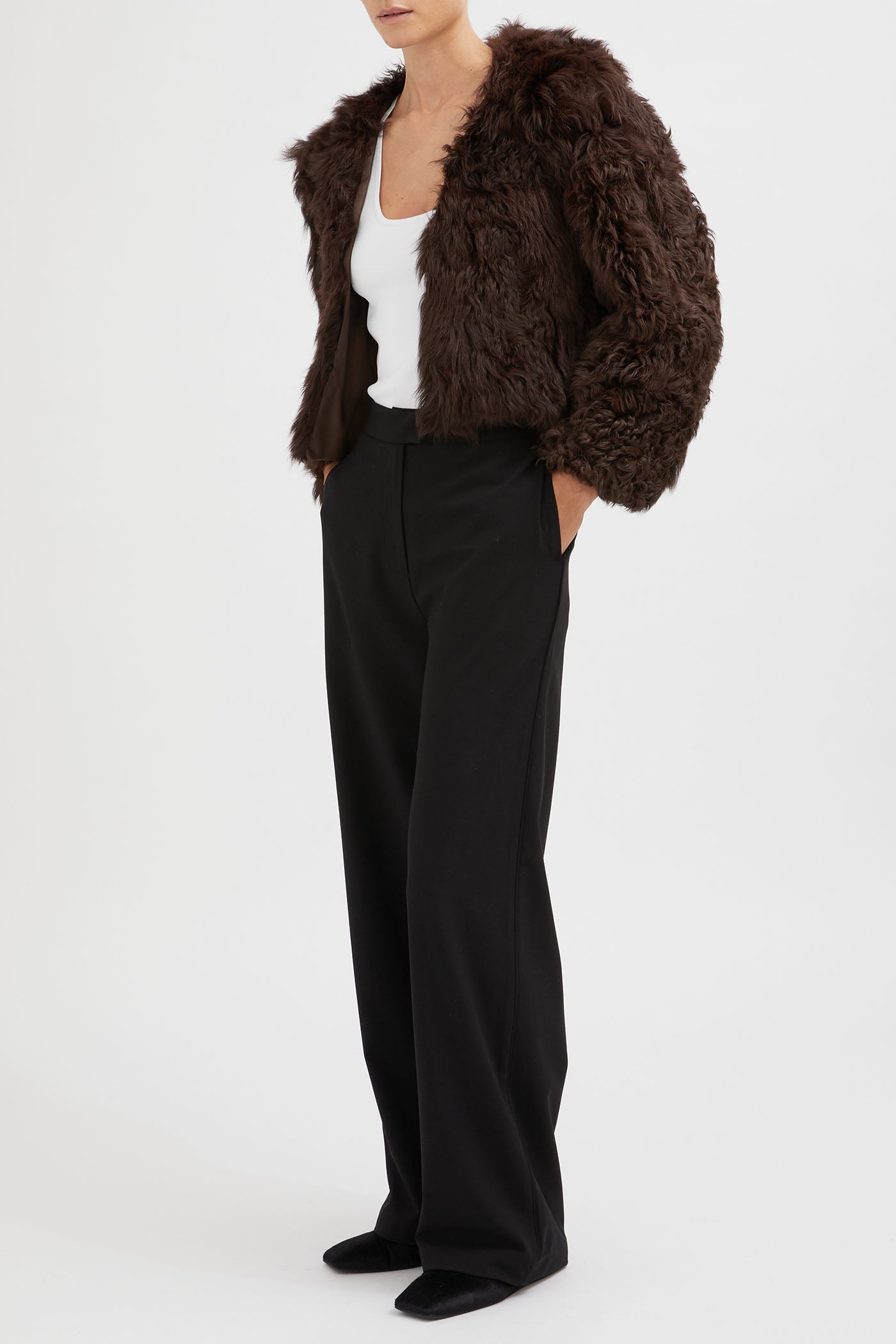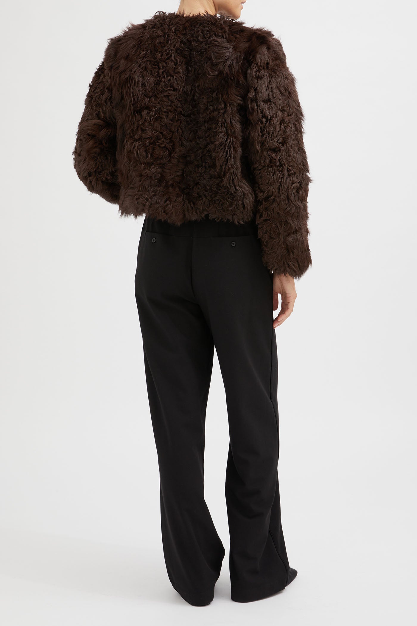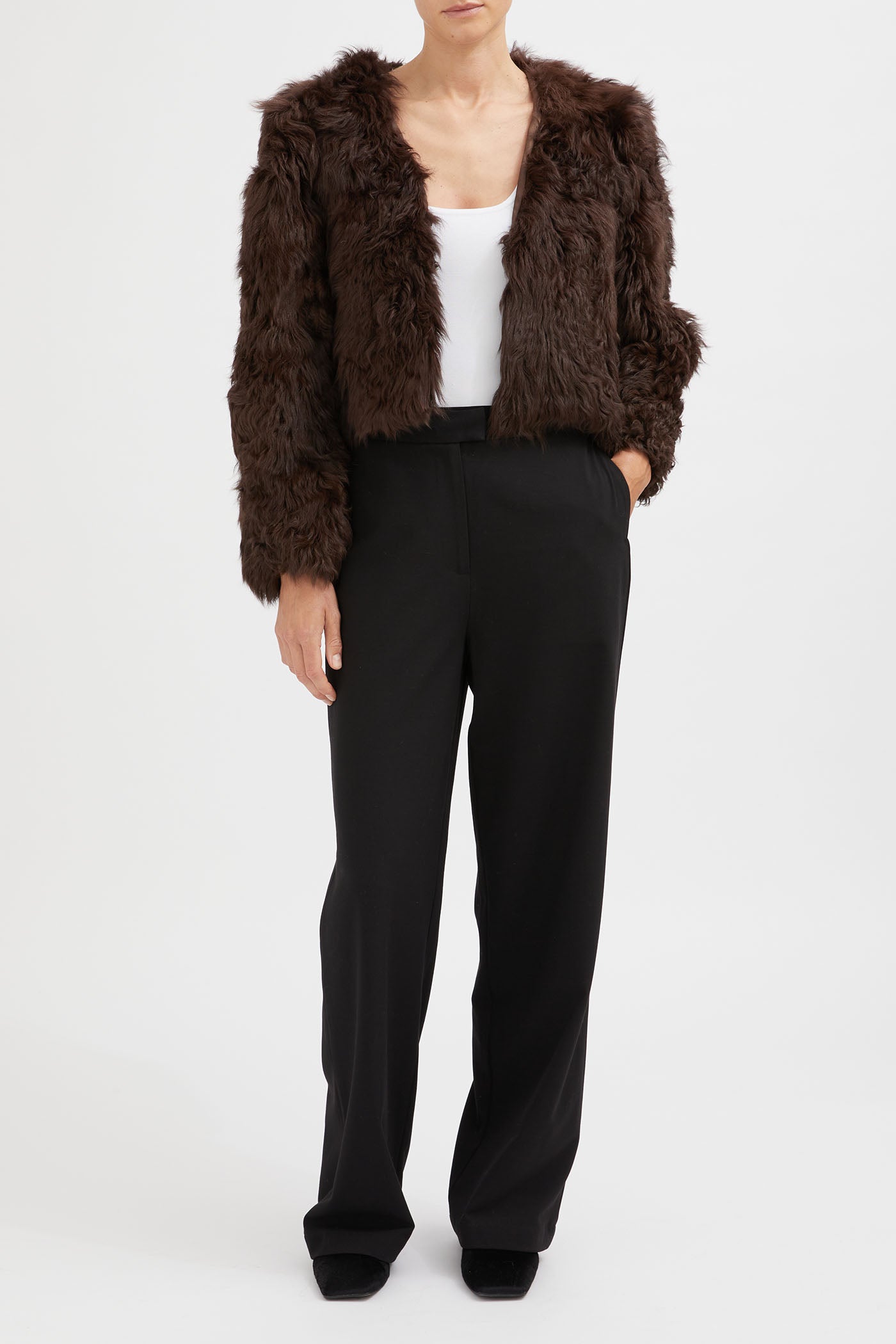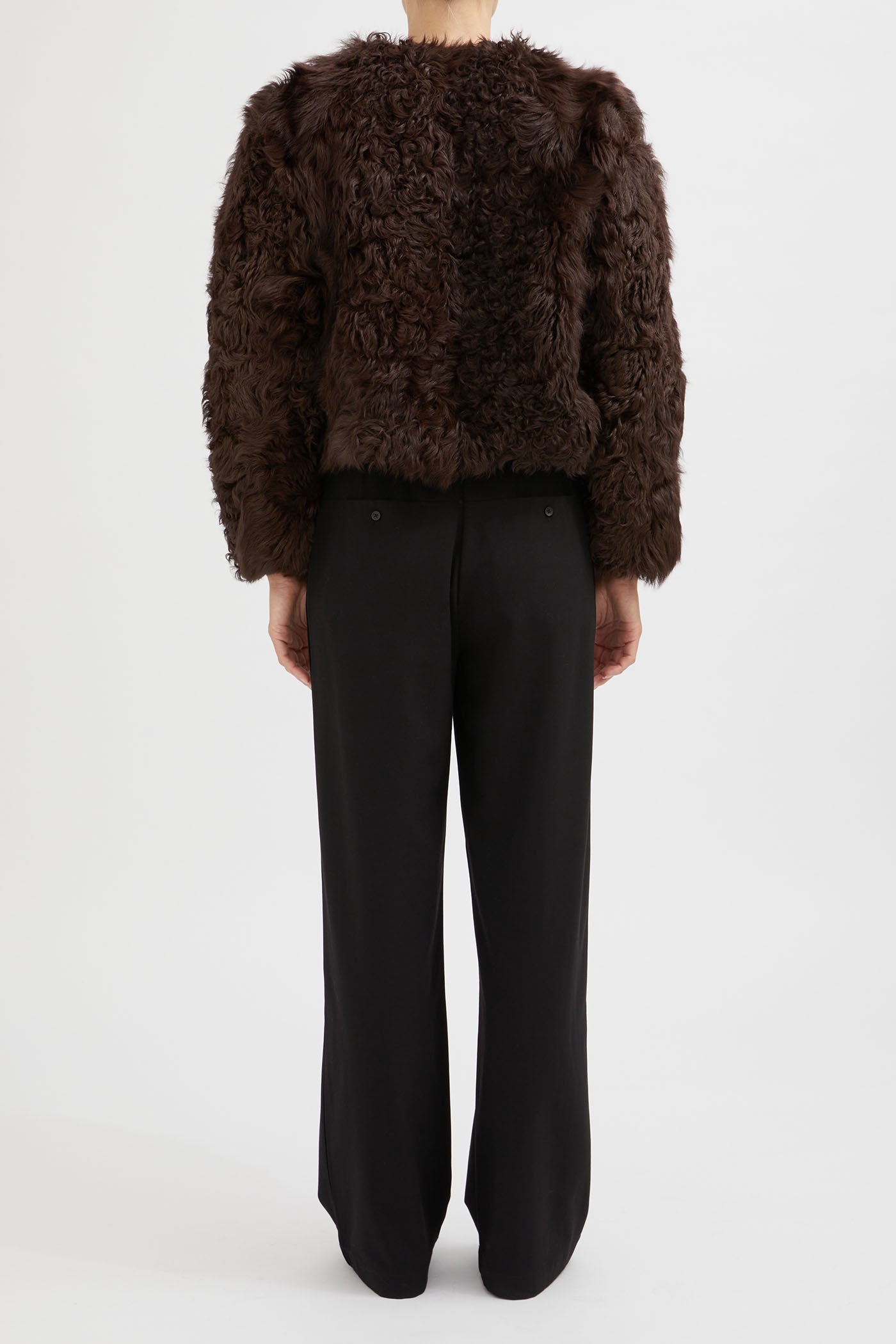 Cut from 100% luxurious wool shearling, this rich chocolate coat gives the sense of a vintage find. Naturally insulating, wool is functional for both warmth and durability, while also retaining style. Wear to elevate an outfit or make a statement.