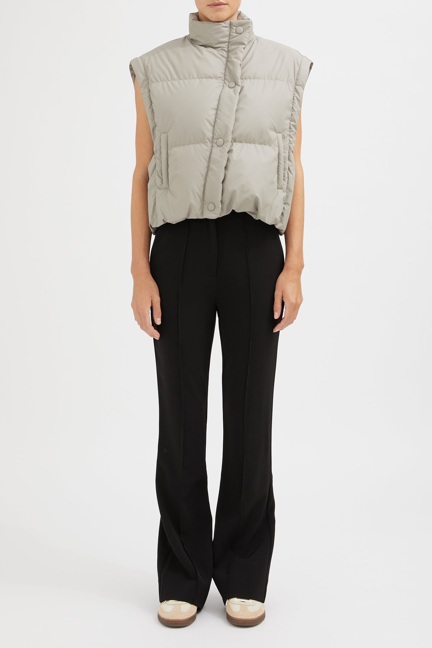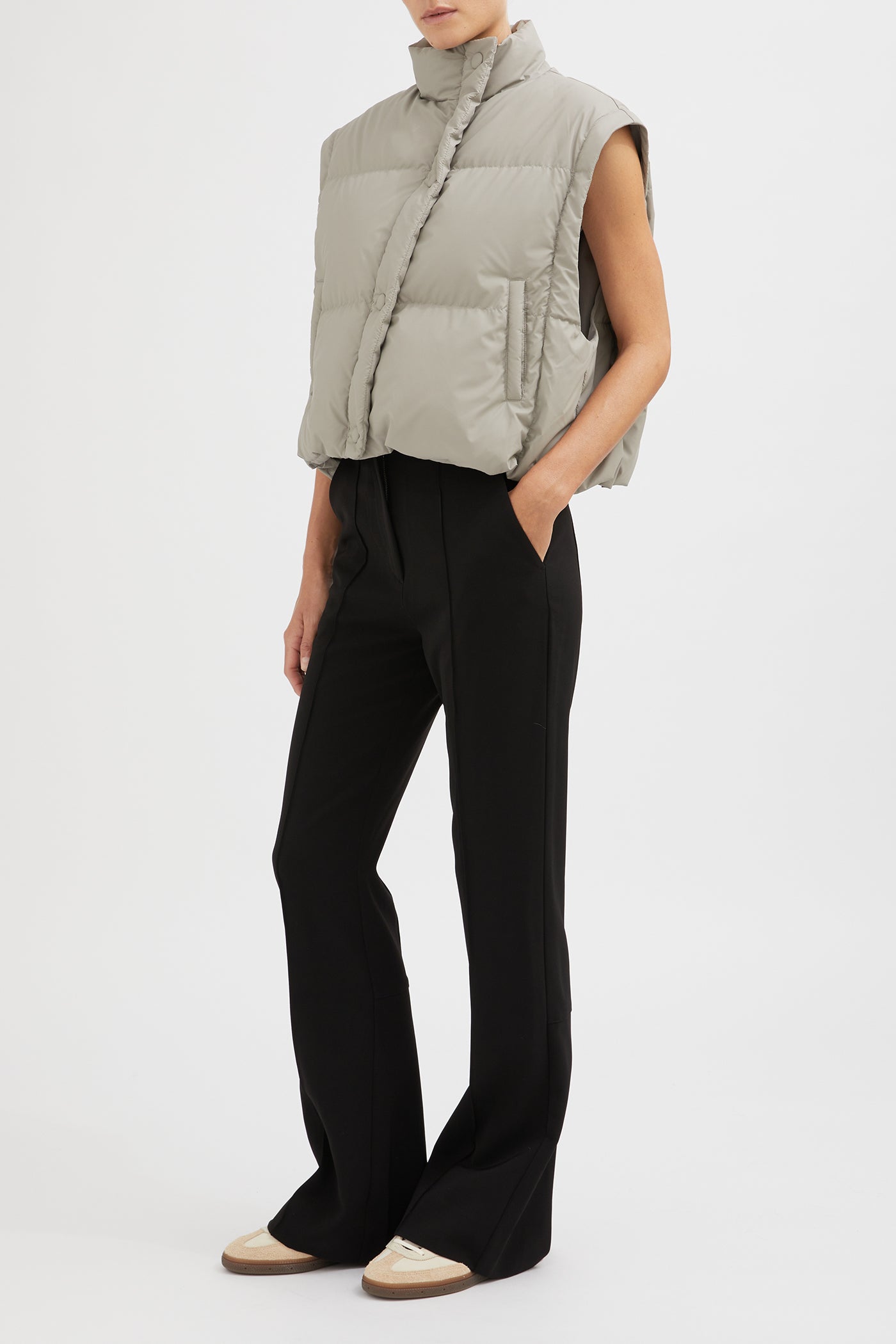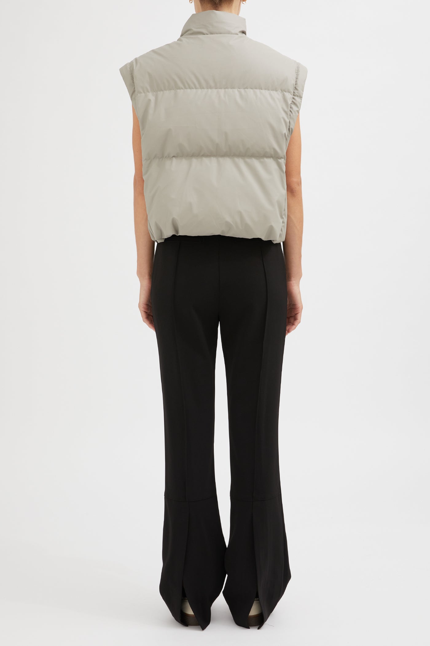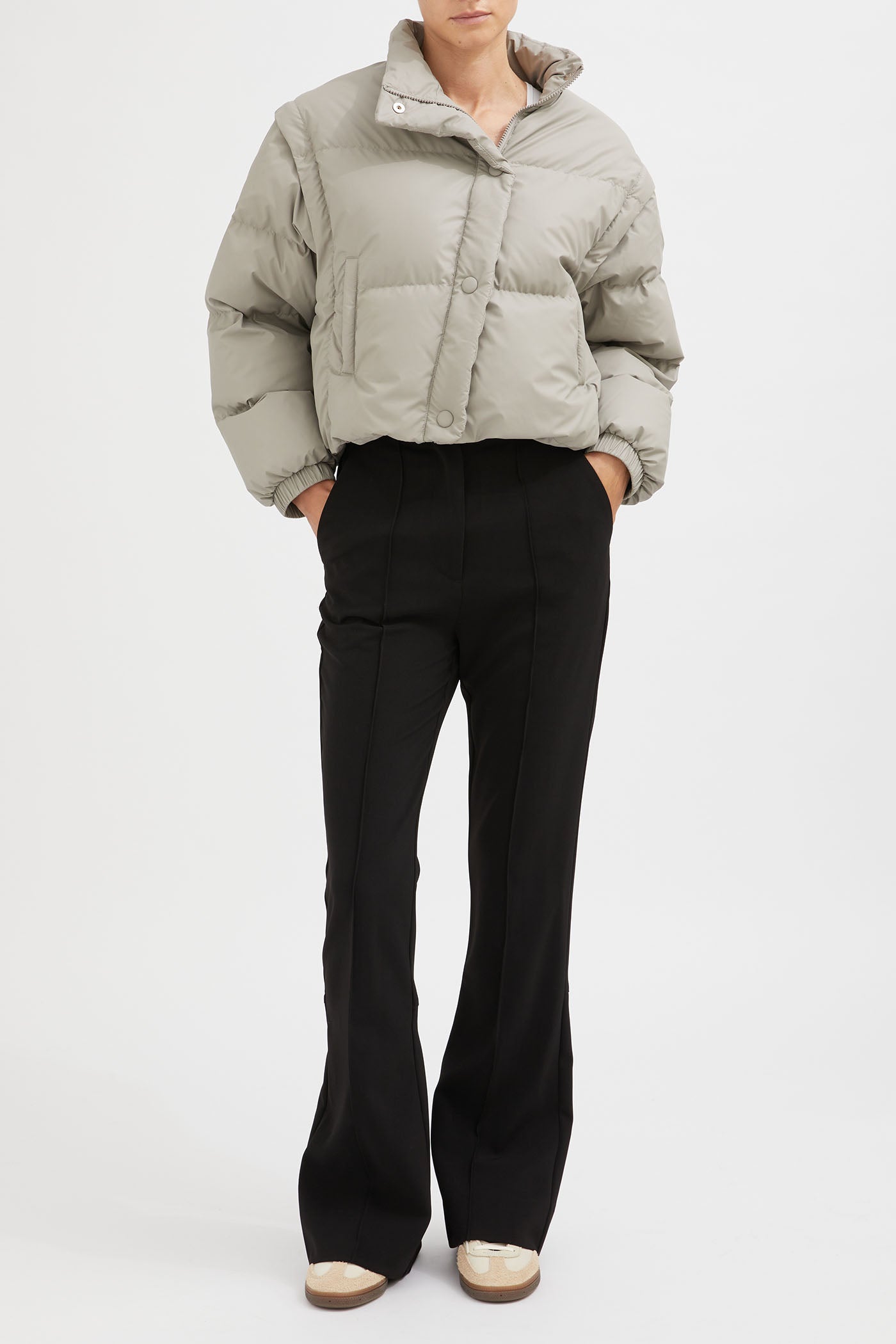 A premium cropped puffer jacket designed with style and function in mind. It is cut from a butter-soft PU-blend fabrication, quilted with insulating duck down. Adjustable drawcords at the hem allow heat to be locked in. Detachable sleeves transform the jacket into a vest, offering enhanced versatility for varying weather.